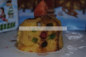 Mehl, Puddingpulver, Vanilinzucker und Backpulver michen und auf die Buttermasse sieben, unterheben, Sahne zufügen, Eischnee unterheben und in die vorbereitet Formen füllen, bei 25 Minuten bei 175°C Ober/Unterhitze backen.